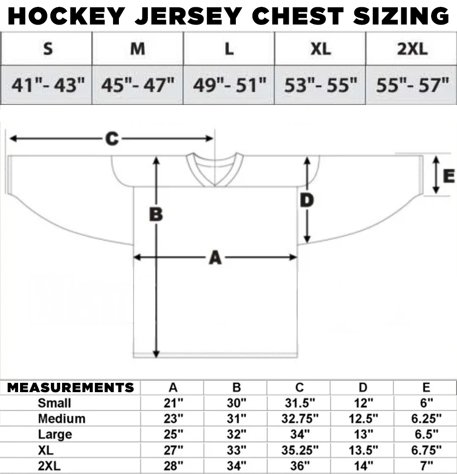 These are high-quality, real NHL-style game jerseys made with 100% Polyester Heavyweight Air-Knit Fabric, Sewn-In Body & Sleeve Stripe, Double-Reinforced Shoulders & Elbows, Lace-Up Neck with Underlay, and of course -- The Bombargo Team Logo!